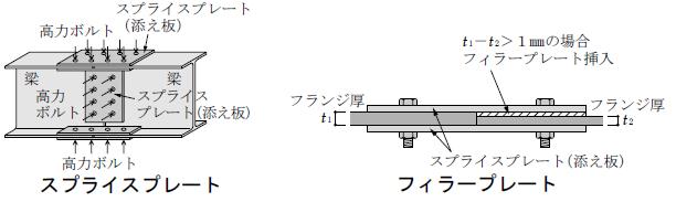 スプライスプレートとは、高力ボルト接合による鉄骨造の柱や梁の継手において、あらかじめ所定の位置にボルト貫通孔を加工した添え板である。(一級施工:平成26年No.24)