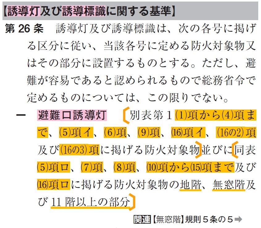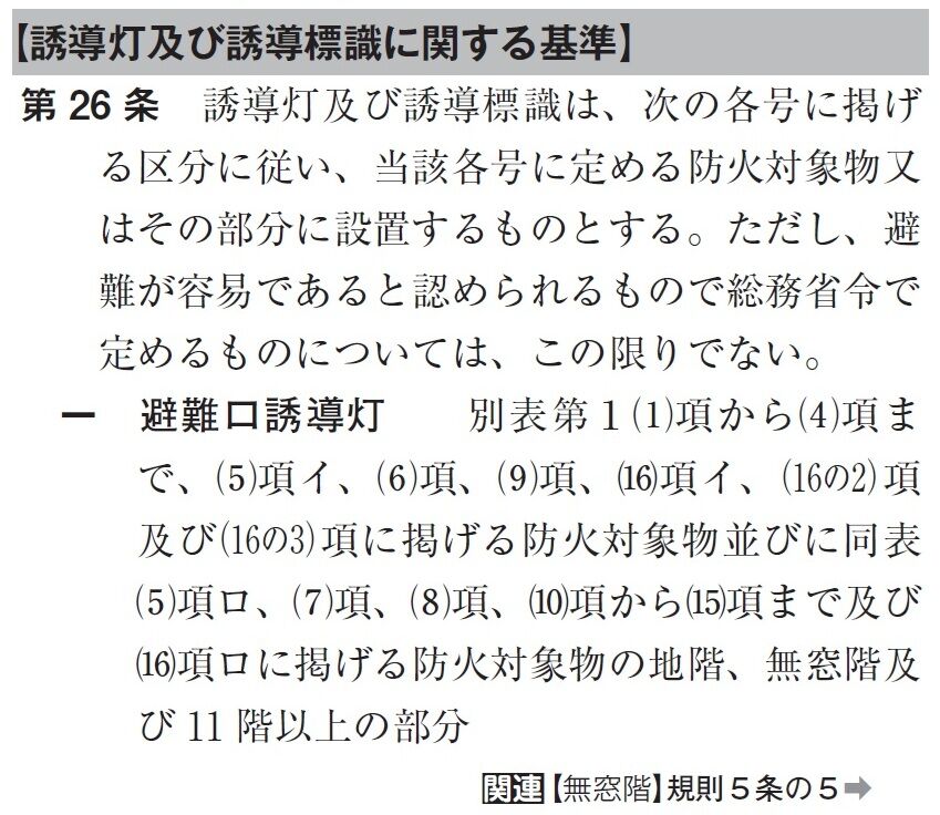 → 地階、無窓階、11階以上の部分に避難口誘導灯が必要
